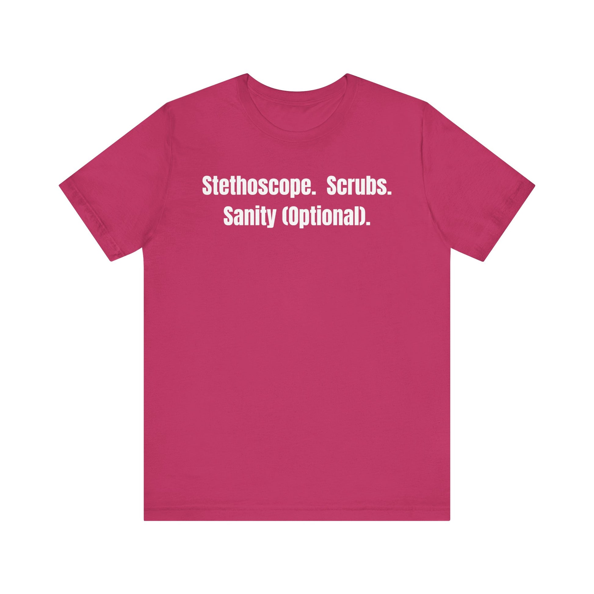 Funny Medical Tee - Stethoscope. Scrubs. Sanity (Optional)